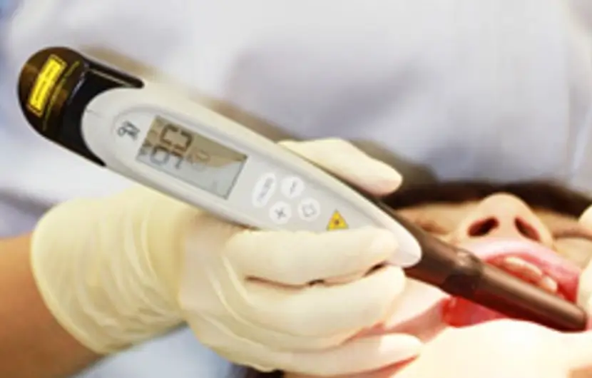 3. 初期むし歯がある方はレーザー光を用いてむし歯の深度を計測します。