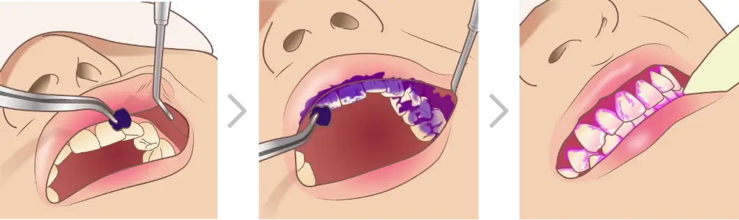 4. 歯の表面に残っているプラークの染め出しをします。